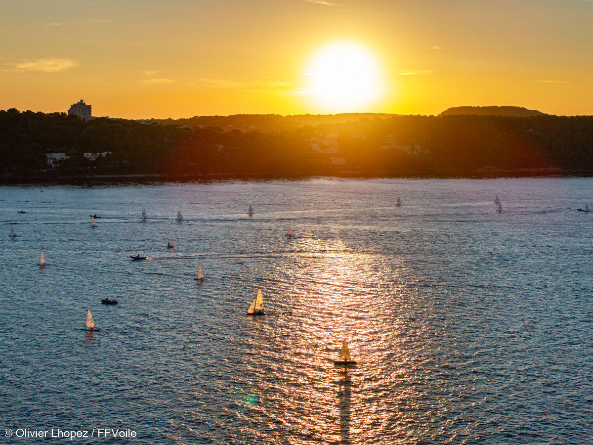 Ce n’est que lorsque le vent thermique de Sud-Ouest a réussi à s’imposer sur le plan d’eau que l’organisation a pu faire repartir toutes les flottes. Un retour sur l’eau, vers 17 h, qui a allongé le programme jusqu’à 20 h 00, au coucher du soleil. Une longue journée de compétition qui a permis de valider, à minima, une course dans toutes les séries.